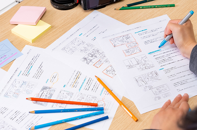 ヒアリングをもとに、撮影する動画のシナリオや絵コンテを制作します。